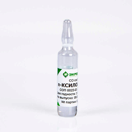 Стандартный образец состава п-ксилола (СОП 0022-03 СТХ) предназначен для градуировки хроматографов, для аттестации методик измерений и контроля точности результатов измерений содержания п-ксилола в объектах окружающей среды, биологических материалах, технических продуктах.
