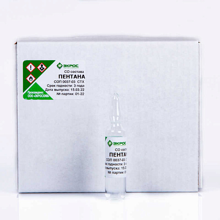 Стандартный образец состава пентана (СОП 0037-03 СТХ) предназначен для градуировки хроматографов, для аттестации методик измерений и контроля точности результатов измерений содержания пентана в объектах окружающей среды, биологических материалах, технических продуктах.