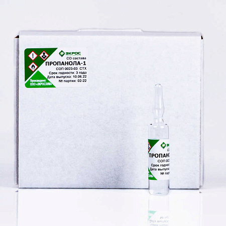 Стандартный образец состава пропанола-1 (Пропан-1-ол, 1-пропанол, пропиловый спирт, н-пропиловый спирт) (СОП 0023-03 СТХ) предназначен для градуировки хроматографов, а также метрологической аттестации и контроля погрешности методик выполнения измерений содержания пропанола-1 в объектах окружающей среды, биологических материалах, технических продуктах.