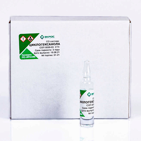 Стандартный образец состава циклогексанола (СОП 0030-03 СТХ) предназначен для градуировки хроматографов, для аттестации методик измерений и контроля точности результатов измерений содержания циклогексанола в объектах окружающей среды, биологических материалах, технических продуктах.