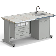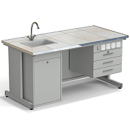 Стол преподавателя с полкой 1200х750х950 в сборе, раб. поверхность - ЛАМИНАТ СЕРЫЙ