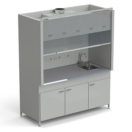- Вытяжной шкаф оборудован воздуховодом для вытяжки воздуха из рабочей зоны вытяжной камеры;