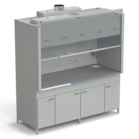 - Вытяжной шкаф оборудован воздуховодом для вытяжки воздуха из рабочей зоны вытяжной камеры;