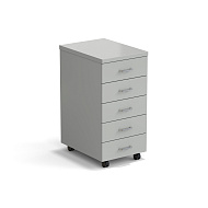 Тумба подкатная 5 ящиков 400х540х820 мм, высокая, серый металл - СТАЛЬ