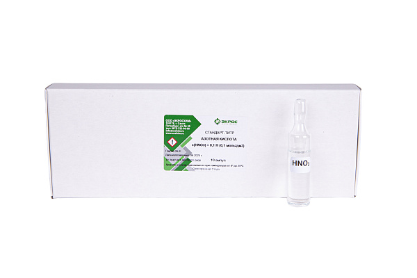 Standard-Nitric acid titers are precise samples of chemicals for the preparation of titration (standard) solutions with a given volume and molar equivalent concentration (0.100 ± 0.001 mol-eq/dm3). They are used in titrimetric analysis methods to determine the amount of the substance being determined.