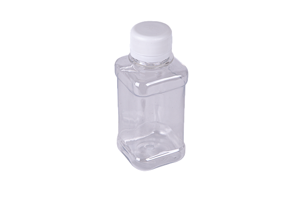 Square bottle with a screw cap and a tamper evident ring (transparent) 125ml (PET)