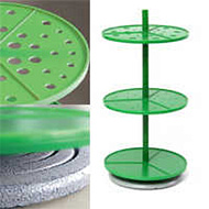 The stability of the tripod is provided by a massive metal base (round or square). The design provides for the possibility of changing the height of the upper disks.