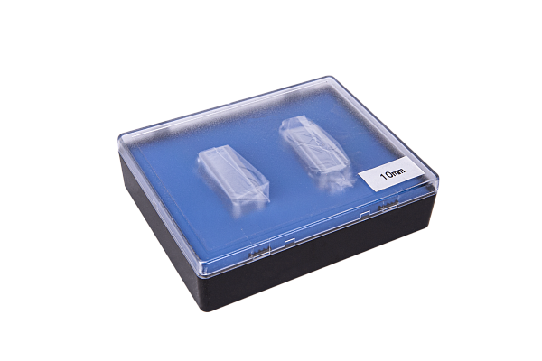 Quartz cuvettes "ECROS" are supplied in 2 pieces in a case.