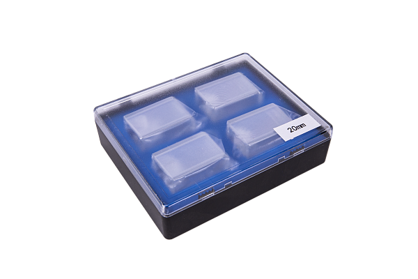 Glass cuvettes are supplied in 4 pieces in a case.