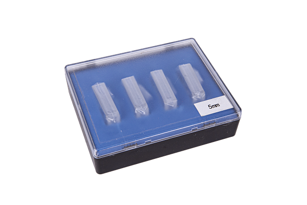 - The cuvettes are manufactured using sintering technology, which provides high mechanical strength and resistance to repeated exposure to aggressive media (acids, alkalis, organics);