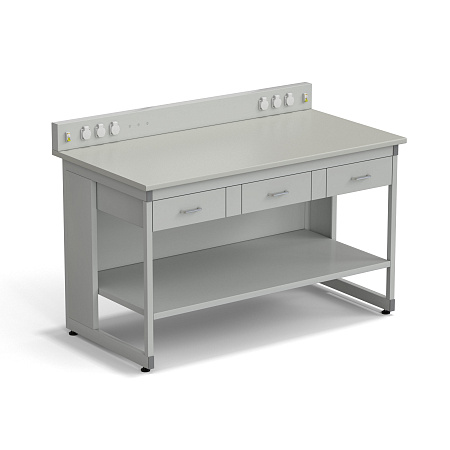 Стол для хроматографа ЭКРОС 1500х800х900/1030 мм с сервисной панелью, ящиками и полкой, раб. поверхность - ЛАМИНАТ СЕРЫЙ