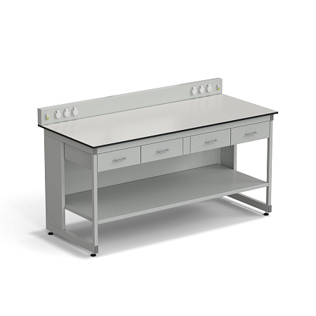 Стол для хроматографа ЭКРОС 1800х800х900/1030 мм с сервисной панелью, ящиками и полкой, раб. поверхность - ЛАМИНАТ СЕРЫЙ