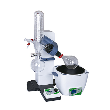 The rotary evaporator principle is that the evaporating flask generates an effective heat transfer for fast evaporation and prevents a local overheating whilst leading to a smooth mixing of the content.