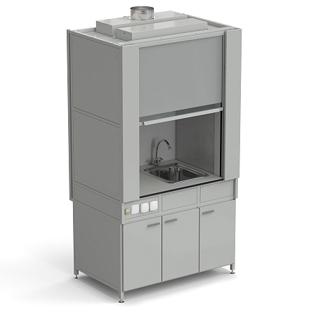 Fume hood (fiberglass chamber) with stainless steel sink, mixer tap and electrical accessories 1200x820x2240 mm, worktop material - plastic laminate LABGRADE