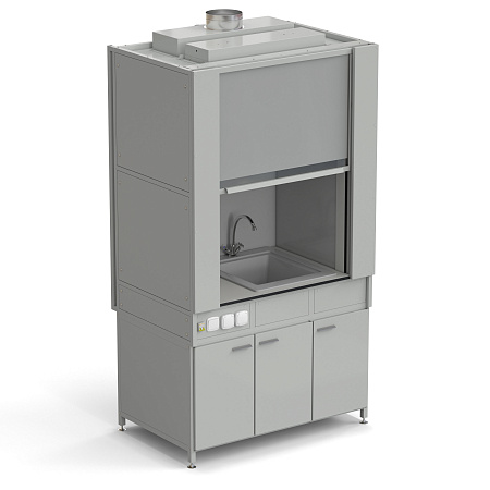 Fume hood (fiberglass chamber) with fiberglass sink, mixer tap and electrical accessories 1200x820x2240 mm, worktop material - plastic laminate LABGRADE