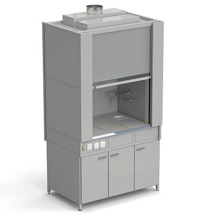 Fume hood (fiberglass chamber) with stainless steel sink, mixer tap and electrical accessories 1200x820x2240 mm, worktop material - plastic laminate LABGRADE