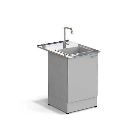 Стол-мойка ЭКРОС 600х800х900 мм, чаша полипропилен, раб. поверхность - МОНОЛИТНЫЙ КЕРАМОГРАНИТ с ПВХ кромкой