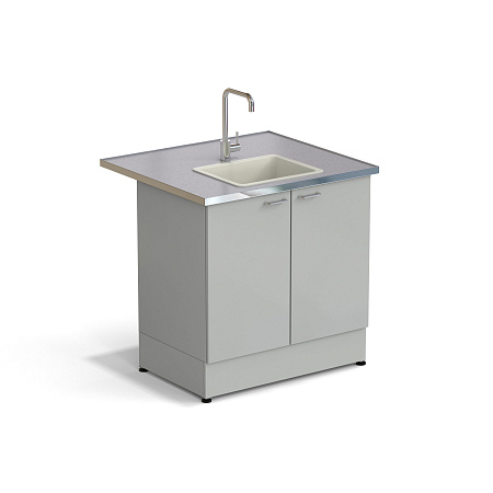 Стол-мойка ЭКРОС 900х800х900 мм, чаша полипропилен слева, раб. поверхность - МОНОЛИТНЫЙ КЕРАМОГРАНИТ с ПВХ кромкой