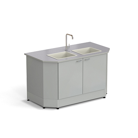 Стол-мойка торцевая ЭКРОС 1500х800х900 мм, две чаши стеклопластик, раб. поверхность - МОНОЛИТНЫЙ КЕРАМОГРАНИТ с ПВХ кромкой