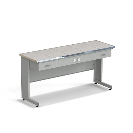 Стол приборный с ящиками и электрикой ЭКРОС 1800х600х900 мм, раб. поверхность - МОНОЛИТНЫЙ КЕРАМОГРАНИТ с НС бортиком