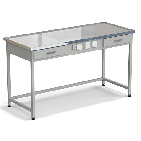 Laboratory bench with illumination of working area 1515x850x850 mm, worktop material - melamine LABGRADE-light, grey metal