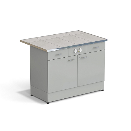Стол-тумба ЭКРОС 1200х800х900 мм 2 двери + 2 ящика с электрикой, раб. поверхность - КЕРАМИКА с НС бортиком