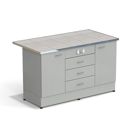 Стол-тумба ЭКРОС 1500х800х900 мм 1 дверь + 1 дверь + 3 ящика с электрикой, раб. поверхность - КЕРАМИКА с НС бортиком