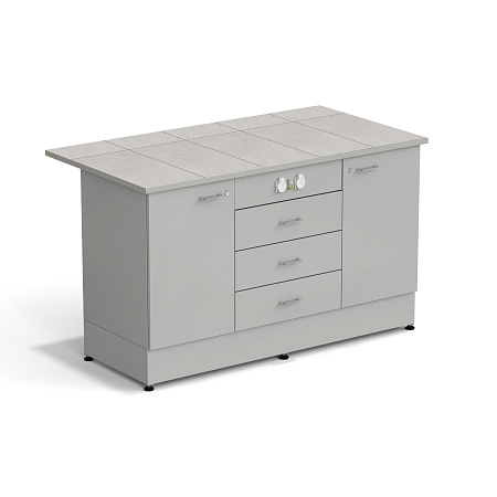 Стол-тумба ЭКРОС 1500х800х900 мм 1 дверь + 1 дверь + 3 ящика с электрикой, раб. поверхность - КЕРАМИКА с НС бортиком