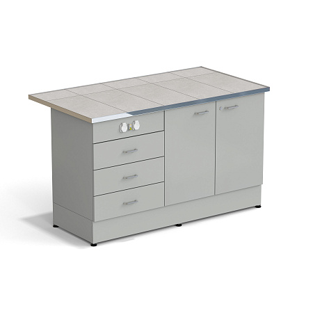Стол-тумба ЭКРОС 1500х800х900 мм 2 двери + 3 ящика с электрикой, раб. поверхность - КЕРАМИКА с НС бортиком