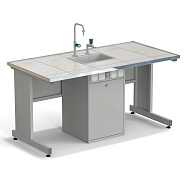 Стол ученический с сервисной стойкой, с электрикой, с подводом воды 1515х750х760, раб. поверхность - КЕРАМИКА