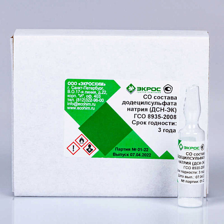 CO is purified sodium dodecyl sulfate packaged in vials from a glass tube for medicines with a capacity of 5 cm3 or sealed glass ampoules with a nominal capacity of 3 cm3. The mass of the substance in the vial (ampoule) is not less than 0.12 g. The vials (ampoules) are packed in polyethylene cases or other packaging.