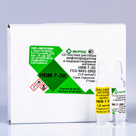 The standard sample of the composition of a solution of petroleum products in a water-soluble matrix is intended for certification of measurement methods and control of the accuracy of measurement results of the content of petroleum products in drinking, natural, wastewater and soil by spectrophotometric, fluorimetric, chromatographic methods.