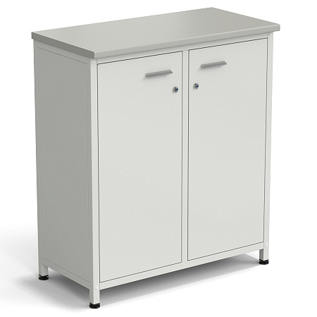 Шкаф-тумба серая 2 двери 910х450х1060 мм, раб. поверхность - ЛАМИНАТ БЕЛЫЙ