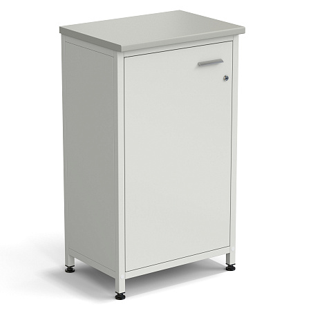 Шкаф-тумба серая 610х450х1060 мм, серый металл, раб. поверхность - ЛАМИНАТ БЕЛЫЙ