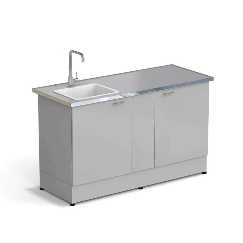 - Стол-мойка ЭКРОС 1500х600х900 мм, чаша полипропилен слева, раб. поверхность - МОНОЛИТНЫЙ КЕРАМОГРАНИТ с НС бортиком