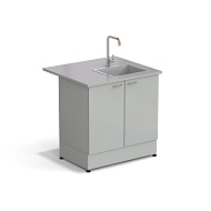 - Стол-мойка состоит из металлического каркаса с установленной дверью и комплекта сантехнических принадлежностей;