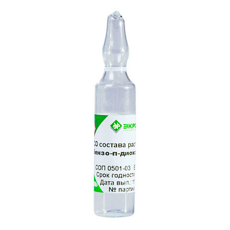 Стандартный образец состава раствора Дибензо-п-диоксина в толуоле применяется согласно ПНД Ф 13.1.64-08, ПНД Ф 13.1.65-08, ПНД Ф 14.1:2:4.251-08, ПНД Ф 16.1:2:2:2:3.56-08.