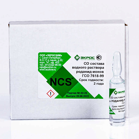 Стандартный образец состава водного раствора роданид-ионов предназначен для градуировки средств измерений (СИ), предназначенных для определения содержания роданид-ионов в водных средах, для контроля метрологических характеристик СИ при проведении их испытаний, в том числе в целях утверждения типа, для аттестации методик измерений и контроля точности результатов измерений содержания роданид-ионов в водных средах.
