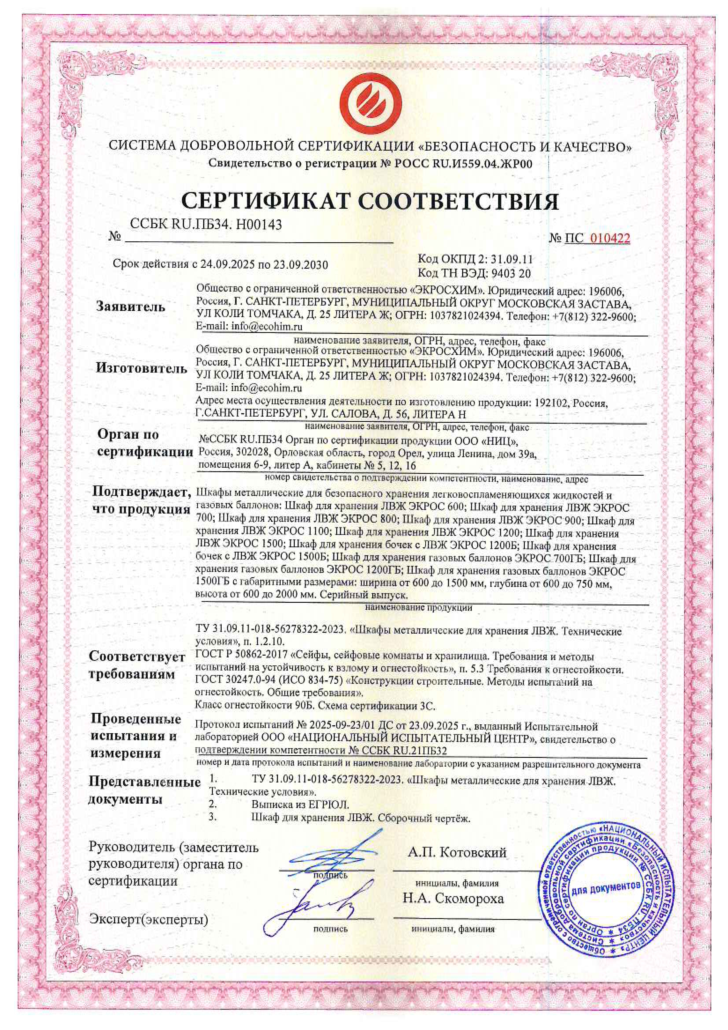 Мы гордимся тем, что наша продукция отвечает современным стандартам безопасности и качества, что гарантирует надежное хранение опасных материалов. Полученный сертификат - это очередной шаг на пути к повышению доверия наших клиентов и партнеров!
