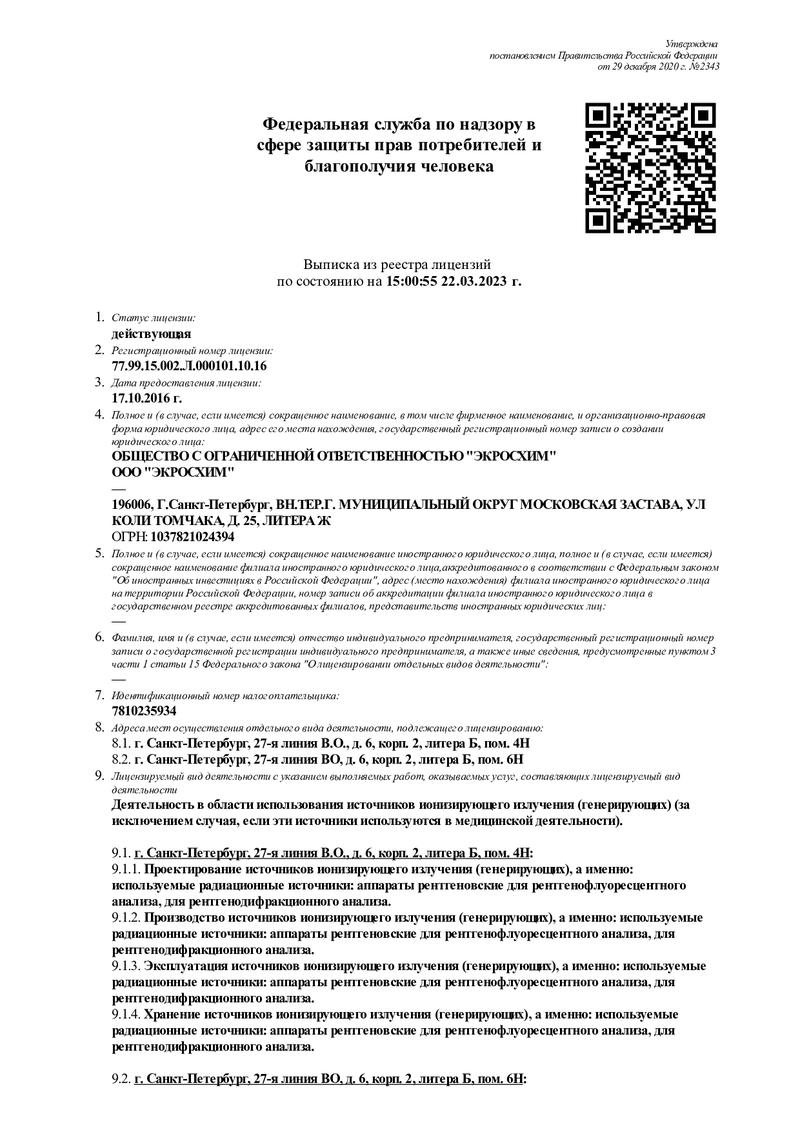 Экспертное заключение о радиационной безопасности ЭКРОС-7700