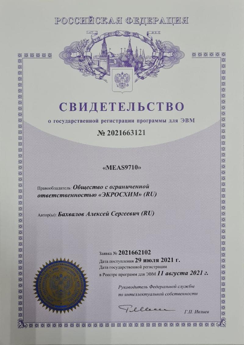 Сертификат о признании утверждения типа средств измерений Спектрометр ЭКРОС XRF-9710 PEARL. Казахстан