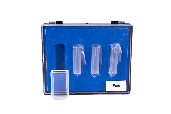 Glass cuvettes are supplied in 4 pieces in a case.