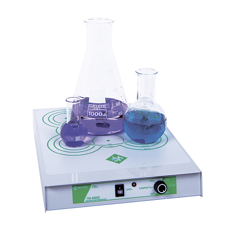 Магнитная мешалка ЭКРОС-6600 (ПЭ-6600/0135) предназначена для одновременного перемешивания жидкостей в нескольких сосудах или в одном сосуде в нескольких точках поверхности дна. Мешалка может использоваться в подготовке проб и проведении анализов в химических, биологических и других лабораториях и производствах. Облегчает работу при большом количестве проводимых анализов, повторений, параллельных проб.