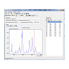 - В программе реализован алгоритм определение пиков спектра - максимумов оптической плотности или минимумов пропускания, в зависимости от выбранного режима отображения спектра. Данный алгоритм эффективно работает только с относительно гладкими спектрами. Имеется возможность ручного редактирования таблицы пиков путем удаления и добавления пиков;